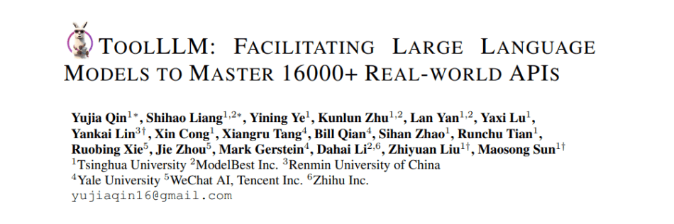 In a new paper ToolLLM: Facilitating Large Language Models to Master 16000+ Real-world APIs, a research team from Tsinghua University, ModelBest Inc., Renmin University of China, Yale University, Tencent Inc. and Zhihu Inc. presents ToolLLM, a general tool-use framework that demonstrates a compelling capability to master 16464 real-world RESTful APIs