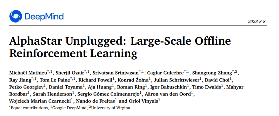 The paper AlphaStar Unplugged: Large-Scale Offline Reinforcement Learning on arXiv.