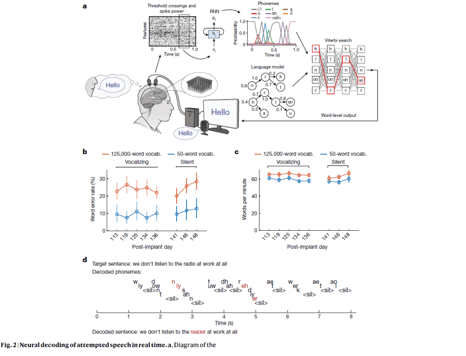 To bridge this gap, in a new paper A high-performance speech neuroprosthesis, a research team from Stanford University, Washington University in St. Louis, VA RR&D Center for Neurorestoration and Neurotechnology, Brown University, Harvard Medical School presents a high-performance speech-to-text BCI that is able to process unconstrained sentences from a large vocabulary at a speed of 62 words/minute, which substantially exceeds the communication rates of conventional technologies for people with paralysis.