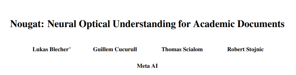 A Meta AI research team presents Neural Optical Understanding for Academic Documents (Nougat), a Visual Transformer model that can effectively convert scientific documents stored in PDF format to a lightweight markup language, even intensive mathematical equations are involved.