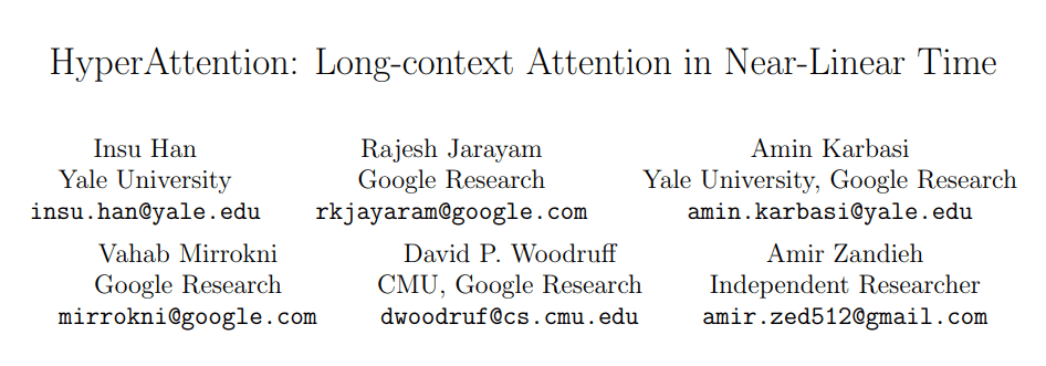 The paper HyperAttention: Long-context Attention in Near-Linear Time on arXiv.