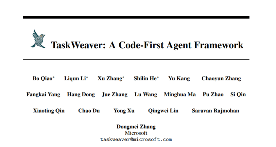 The code is open-sourced at https://github.com/microsoft/TaskWeaver/. The paper TaskWeaver: A Code-First Agent Framework on arXiv.