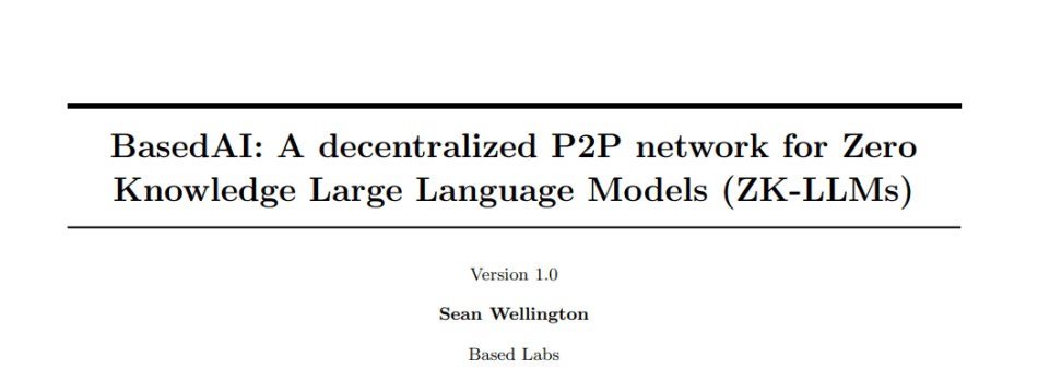 The paper BasedAI: A decentralized P2P network for Zero Knowledge Large Language Models (ZK-LLMs) is on arXiv.