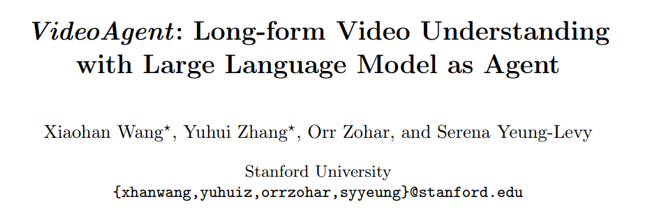 The paper VideoAgent: Long-form Video Understanding with Large Language Model as Agent is on arXiv.