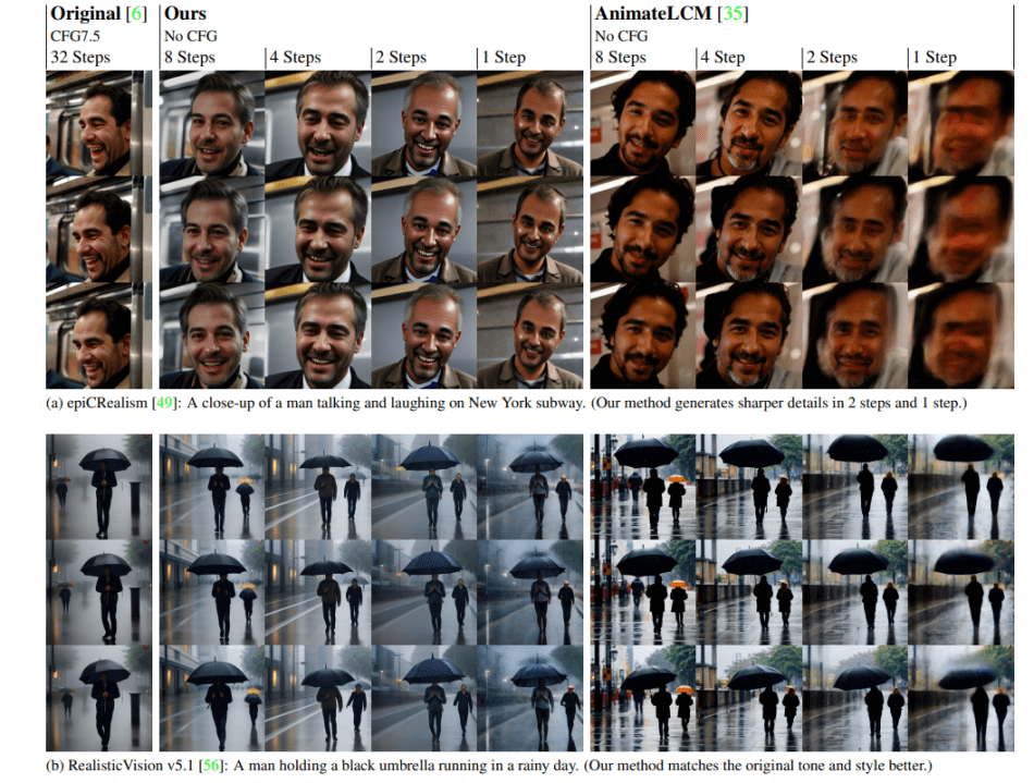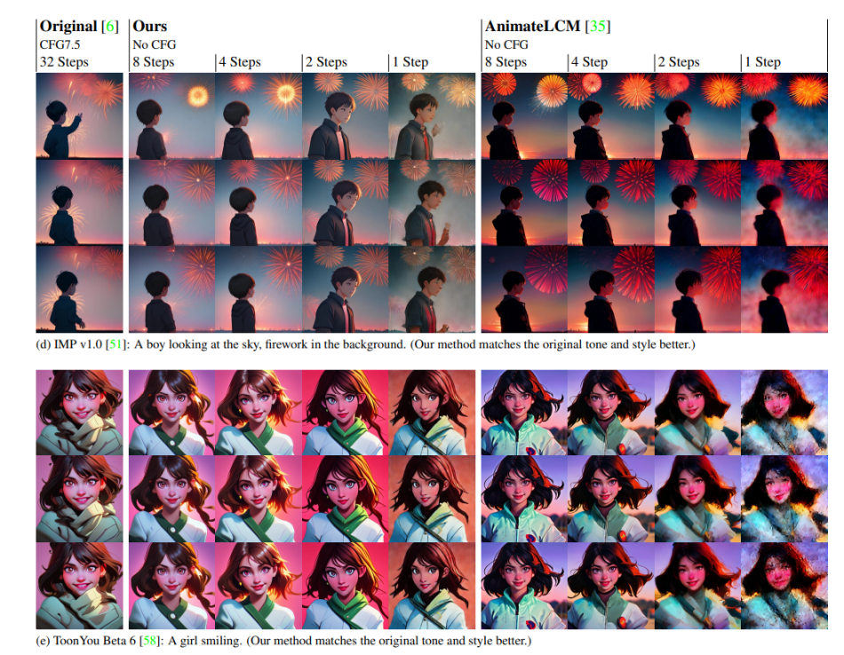 Through empirical analysis, AnimateDiff-Lightning is pitted against the original AnimateDiff and AnimateLCM. The results are striking: AnimateDiff-Lightning produces higher-quality videos in fewer inference steps, outperforming the previous video distillation method, AnimateLCM. Additionally, through cross-model distillation, AnimateDiff-Lightning adeptly preserves the original style of the base model.
