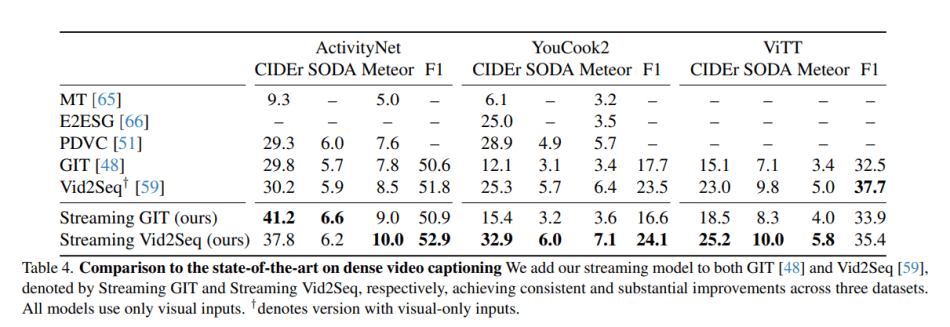 ActivityNet Captions, YouCook2, and ViTT. Impressively, the