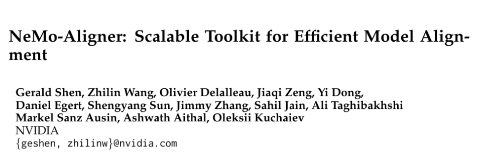 The paper NeMo-Aligner: Scalable Toolkit for Efficient Model Alignment is on arXiv.