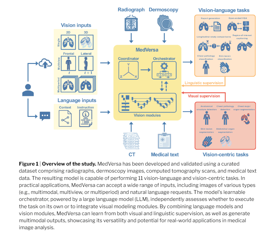 To the best of the research team’s knowledge, MedVersa is the first generalist medical AI (GMAI) model to support multimodal inputs, outputs, and on-the-fly task specification. The development of MedVersa potentially unlocks new opportunities for building more versatile GMAI models.